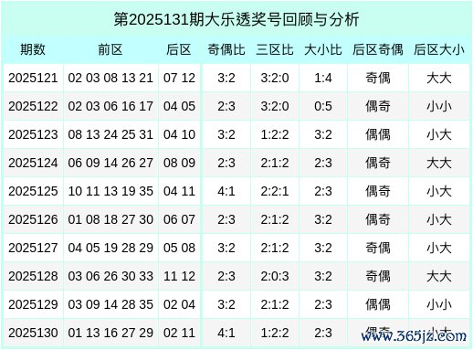 后远离析:上期开出后区号码02、11,分析最近10期后区奇偶走势发现,偶数偏多,开出12枚,本期后区防奇数;最近10期后区大小走势为:大大-小小-小大-大大-小大-小大-小大-大大-小小-小大,本期后区怜惜“小+大”组合号码,后区两码参考02,11。